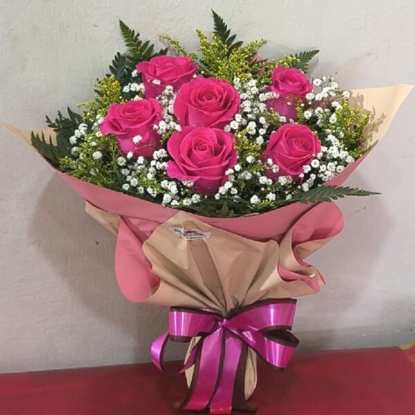 - 6 Rosas Pink Importadas: Flores frescas de qualidade premium selecionadas manualmente.