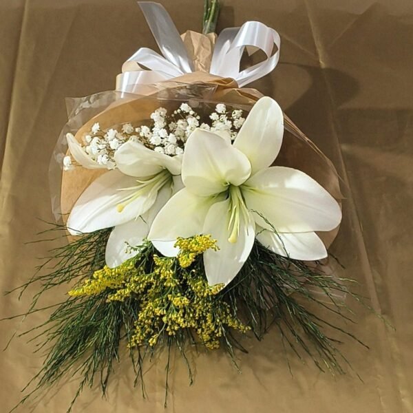 Os lírios brancos carregam simbolismos profundos que incluem pureza, paz e renovação. Perfeito para momentos como aniversários, celebrações, ou até condolências, este buquê é uma escolha refinada para expressar sentimentos sinceros. Além disso, ele complementa qualquer estilo de ambiente, desde os mais clássicos até os modernos, com sua beleza suave e marcante.